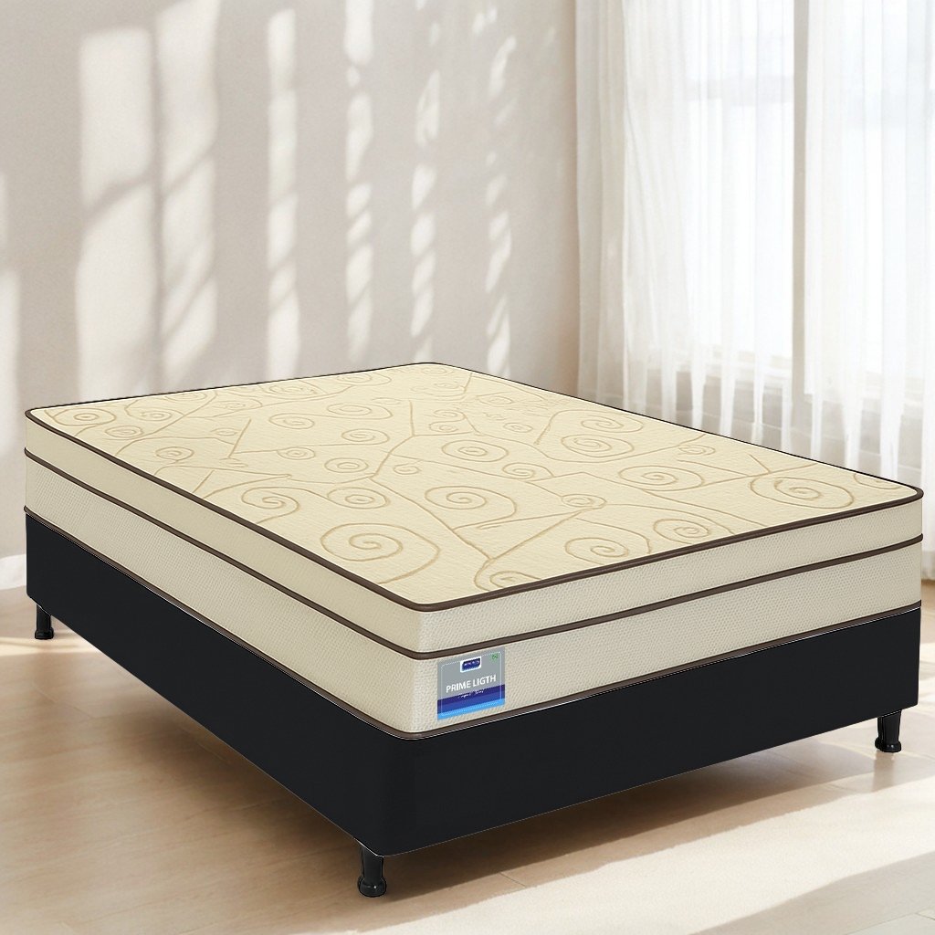 Colchão Casal Prime Light + Base Box Simples Corino Preto – ORTHOPRIME + ALTO NÍVEL CAMAS E COLCHÕES