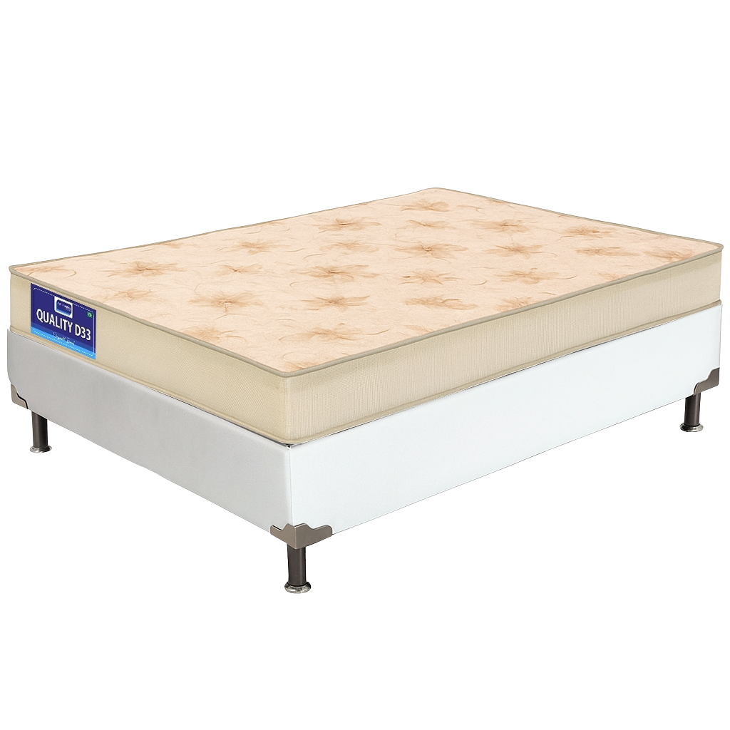 Colchão Casal Quality D33 14 cm + Base Box Simples Corino Branco – ORTHOPRIME + BIOSTAR