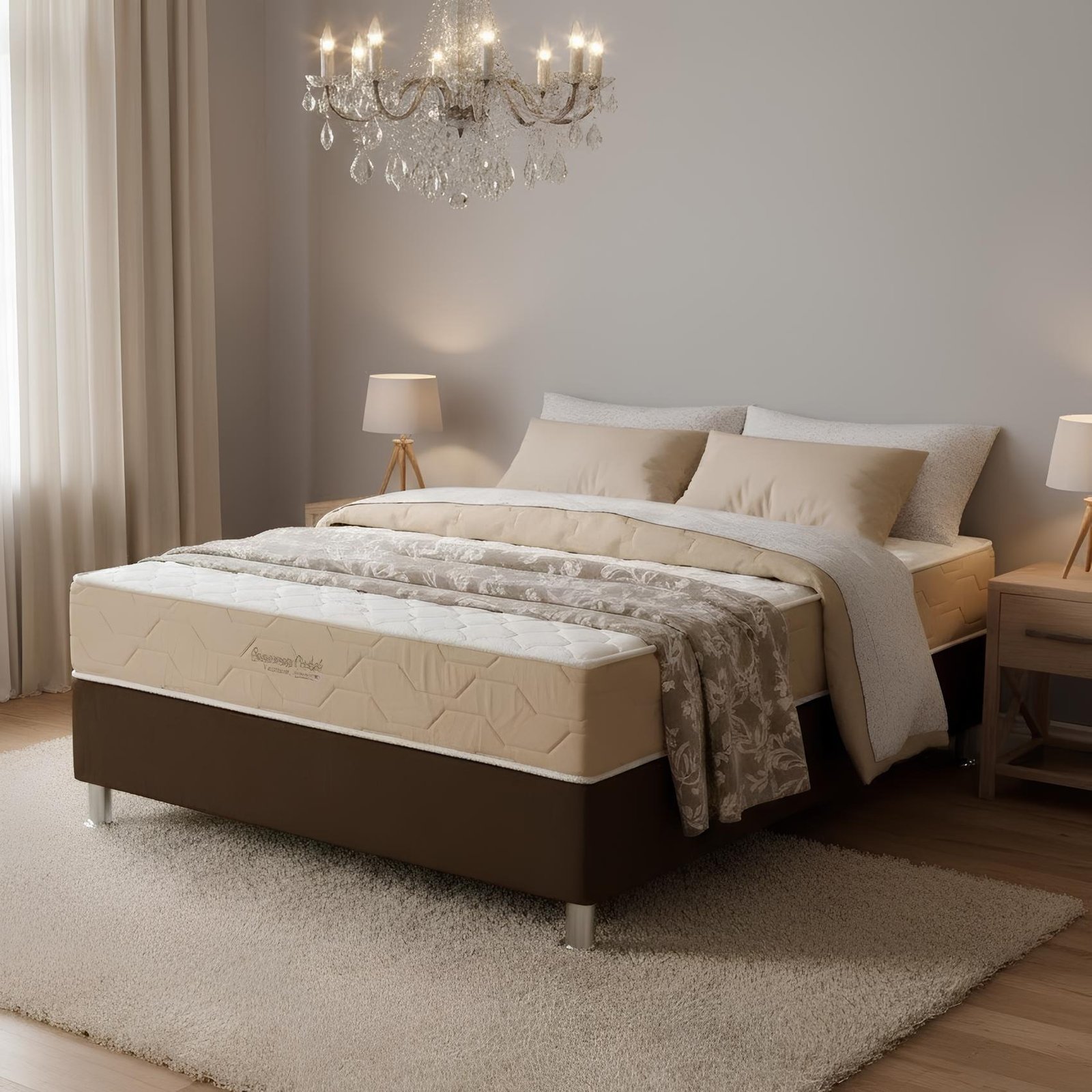 Colchão Casal Supreme Pocket D26 + Base Box Simples Corino Marrom – INOVAFLEX + ALTO NÍVEL CAMAS E COLCHÕES