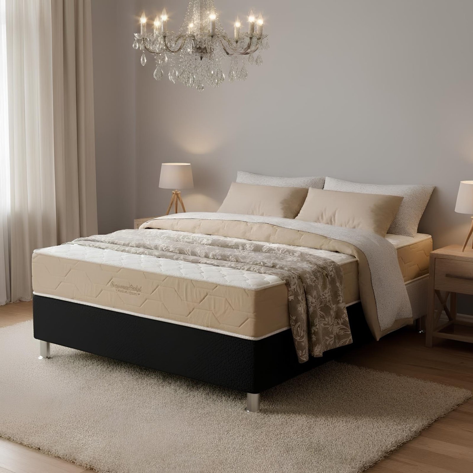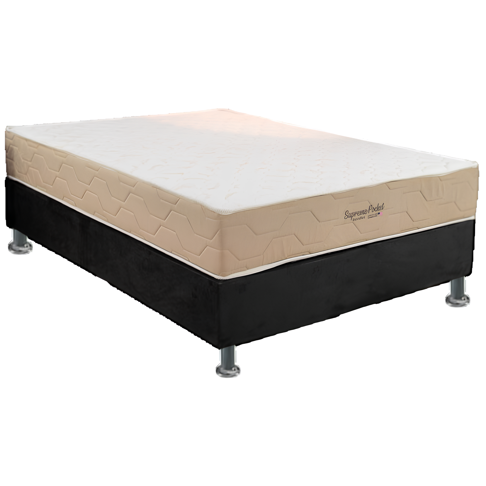Colchão Casal Supreme Pocket D26 + Base Box Simples Corino Preto – INOVAFLEX + BIOSTAR