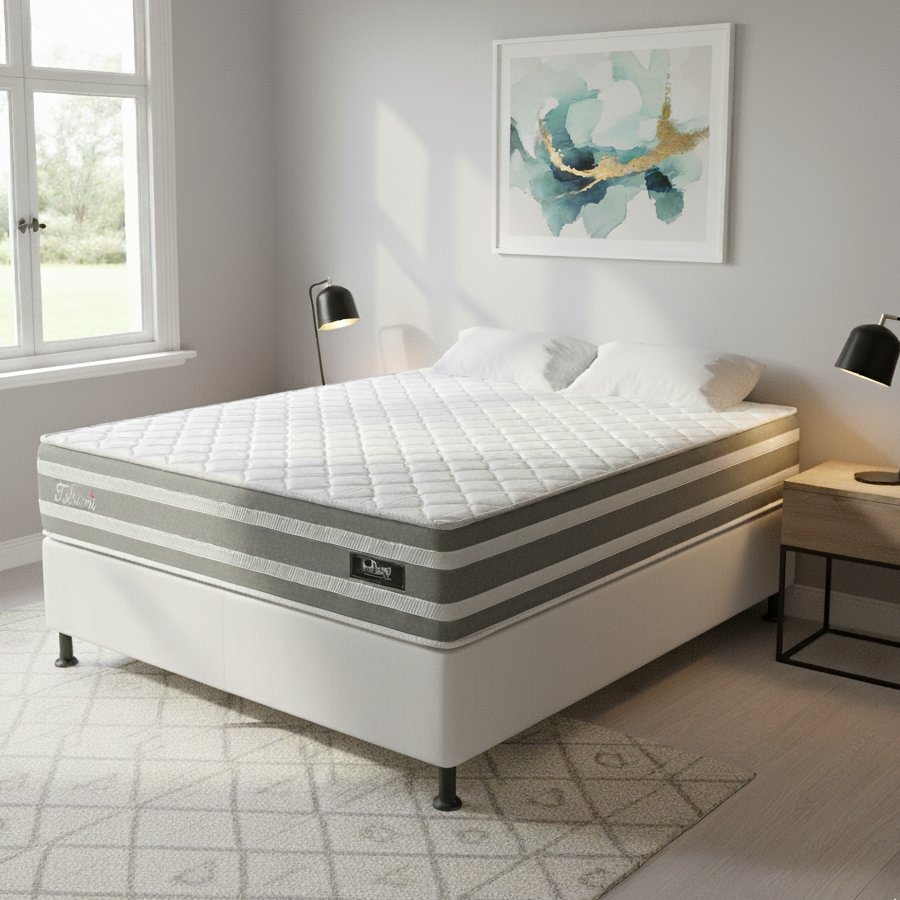 Colchão Casal Talismã D28 + Base Box Simples Corino Branco – DESIGN COLCHÕES + BIOSTAR