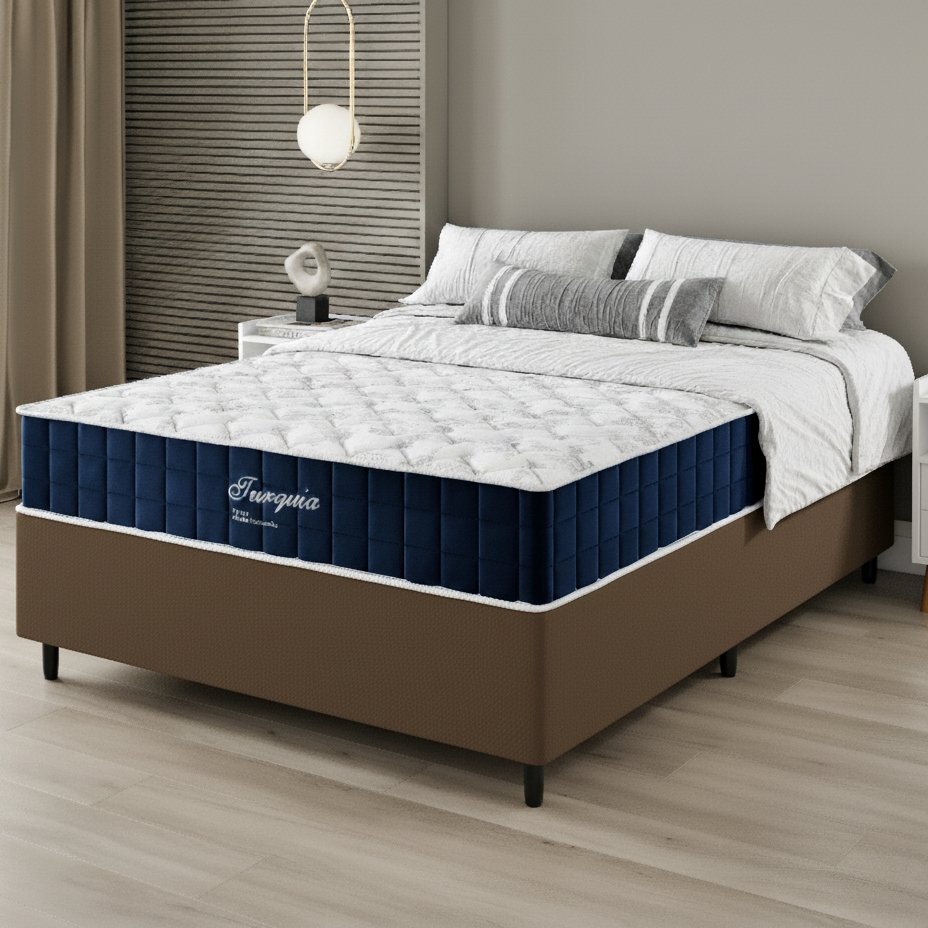 Colchão Casal Turquia D28 + Base Box Simples Corino Marrom – VIERO MÓVEIS + ALTO NÍVEL CAMAS E COLCHÕES