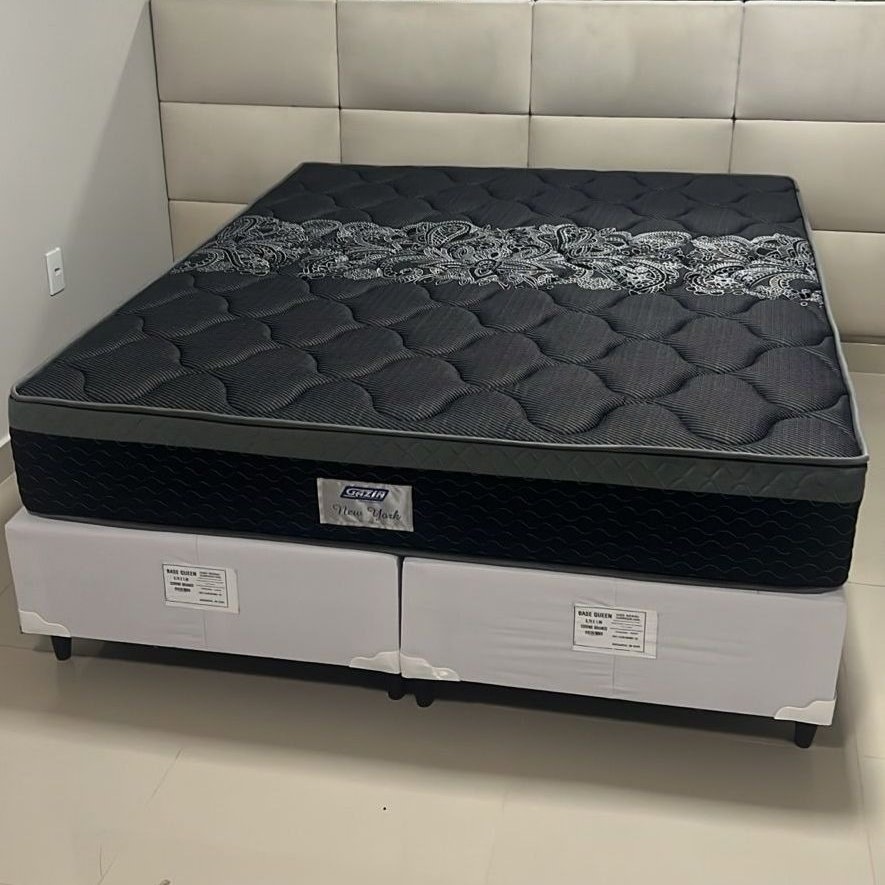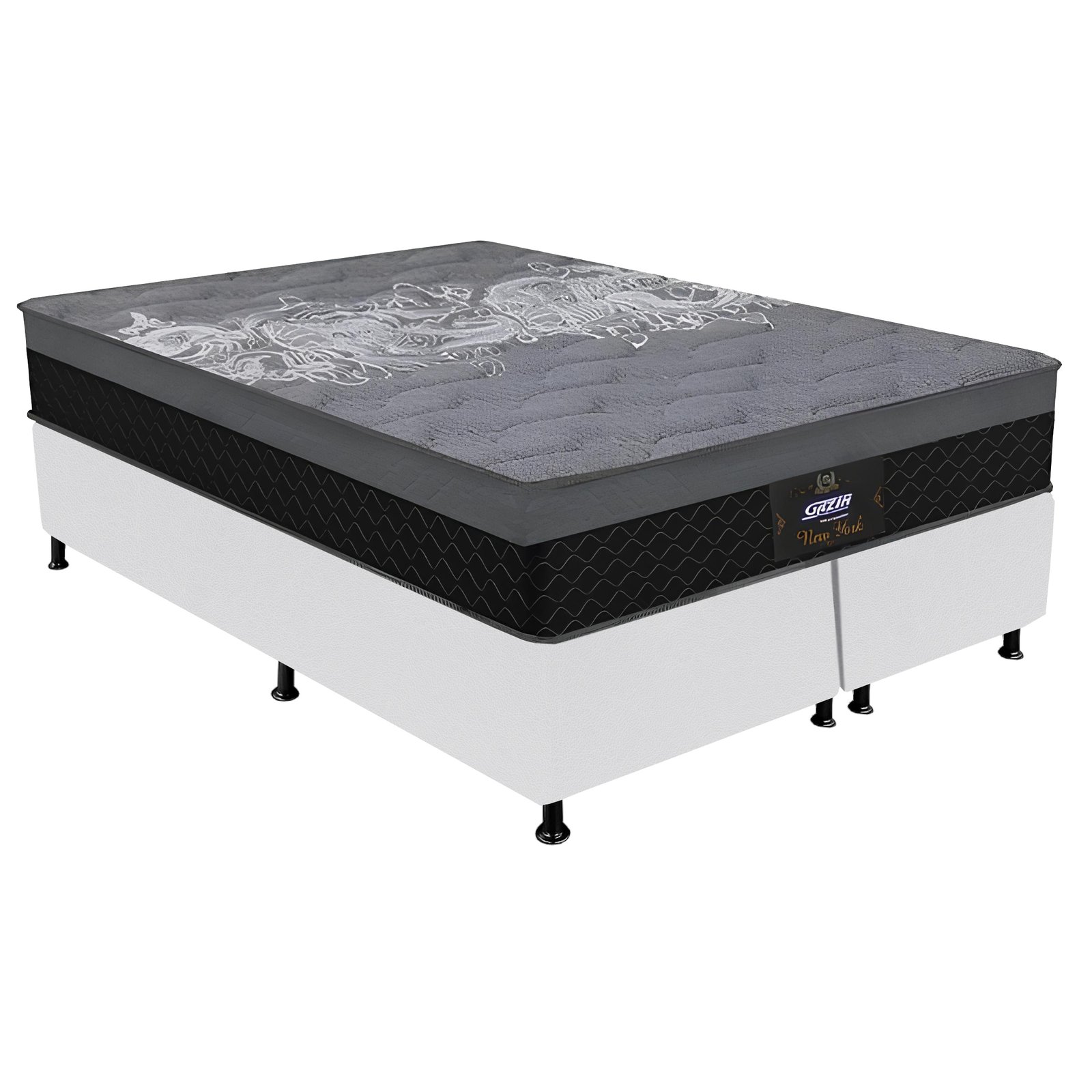 Colchão Queen New York + Base Box Simples Corino Branco – GAZIN + ALTO NÍVEL