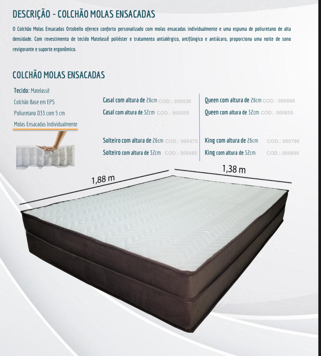 ✨ Colchão Ortobello Molas Ensacadas
