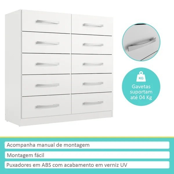 Cômoda 10 Gavetas Torres 51CO1023 Cinamomo/Off White – RODIAL MÓVEIS
