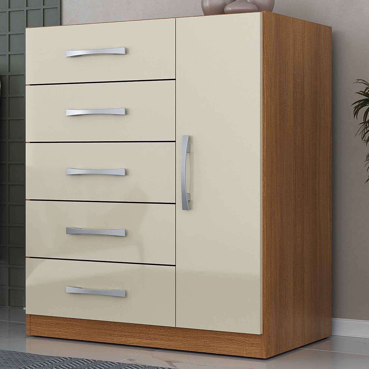 Cômoda 5 Gavetas com Sapateira Corais 51CO1523 Cinamomo/Off White – RODIAL MÓVEIS