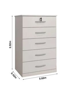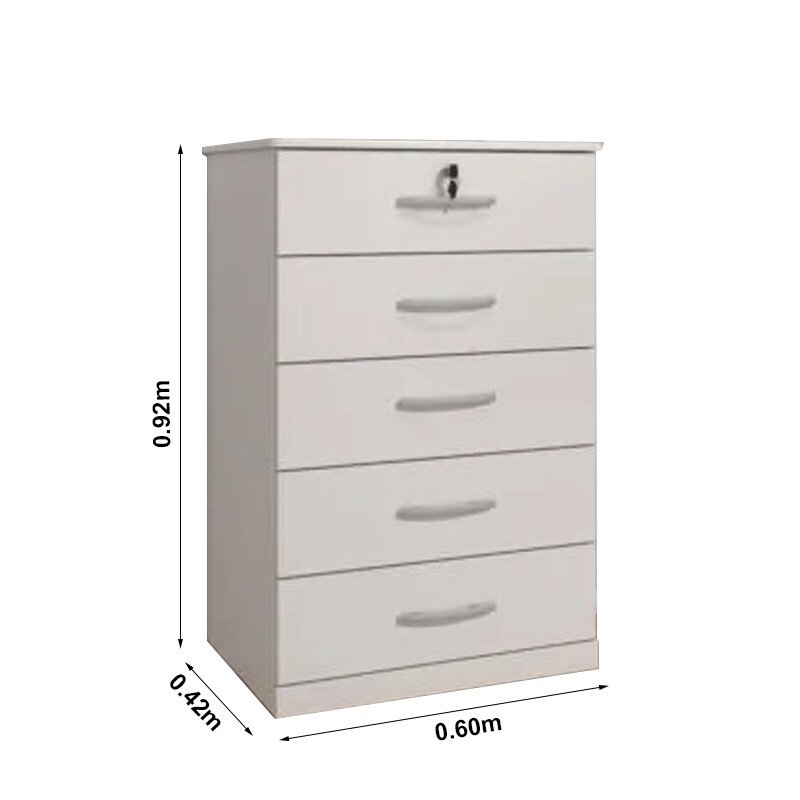 3{%%}Descrição{%%}Cômoda 5 Gavetas Vane 013 Larg. 0.60m Branco JL Móveis