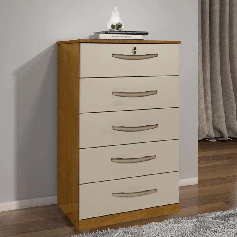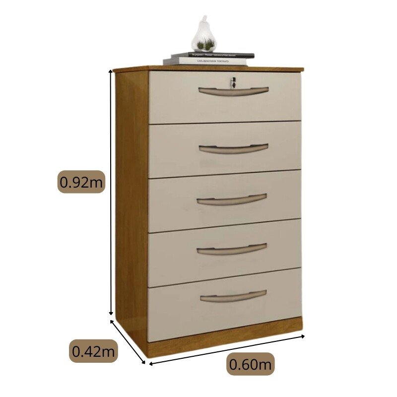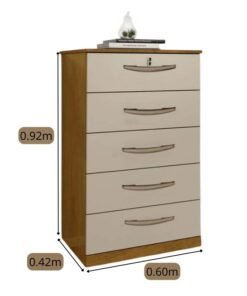 3{%%}Descrição{%%}Cômoda 5 Gavetas Vane 013 Larg. 0.60m Cinamomo/Off JL Móveis.