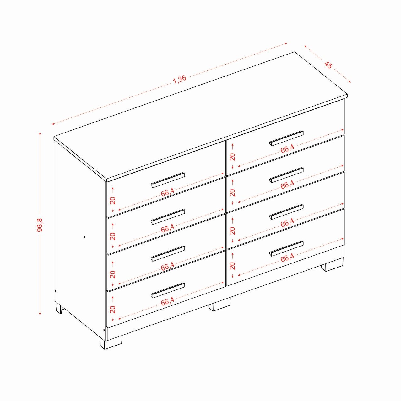 Cômoda 8 Gavetas Atacama/Off White – ARAMÓVEIS