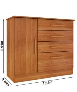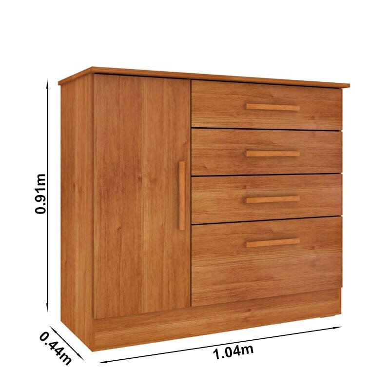 3{%%}Descrição{%%}Cômoda Chicago 4 Gavetas e 1 Porta Larg. 1.04m Cinamomo Tcil