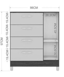 3{%%}Descrição{%%}Cômoda com 1 Porta 4 Gavetas Branco Larg. 0.86m – Poquema