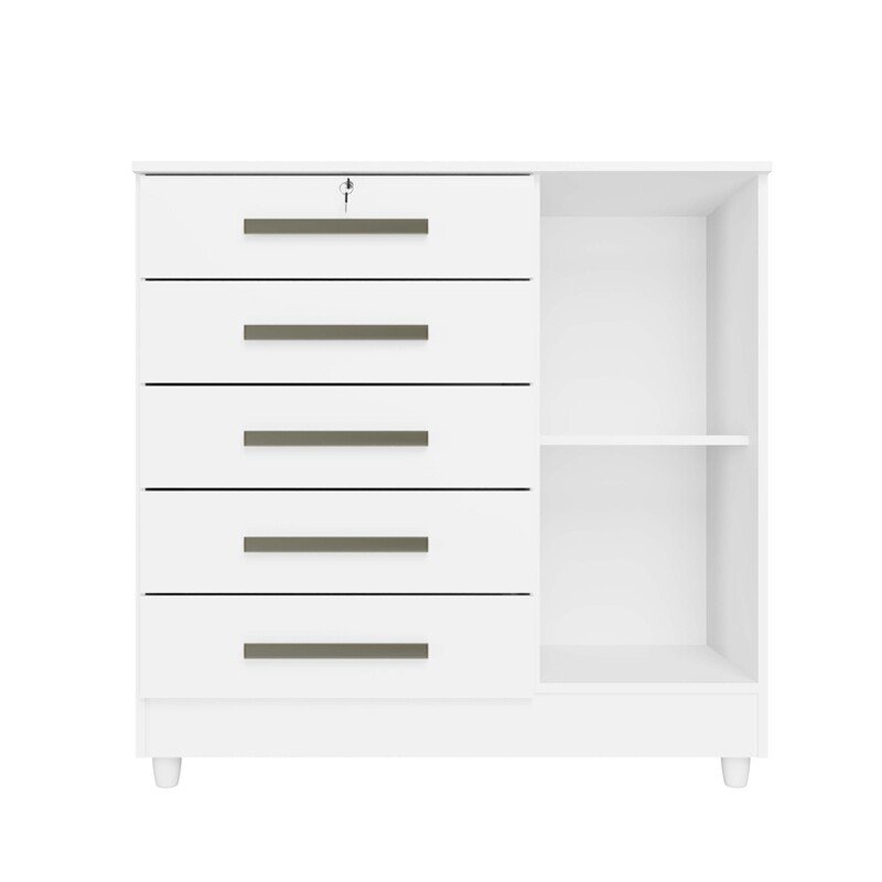 3{%%}Descrição{%%}Cômoda Vitória com 5 Gavetas e 1 Porta Branco Rud Rack