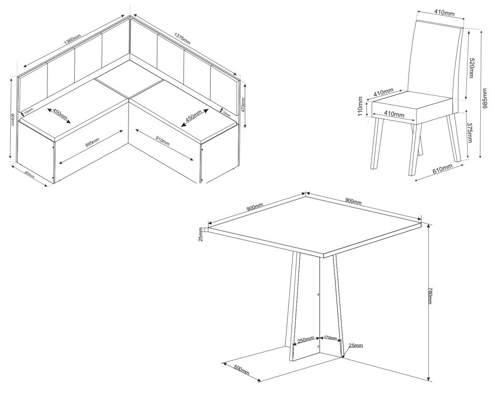 Conjunto Canto Alemão + Mesa Mon/Soberano Mel/Blonde + 2 Cadeiras Milão Mel/Linho Bronze – VIERO MÓVEIS