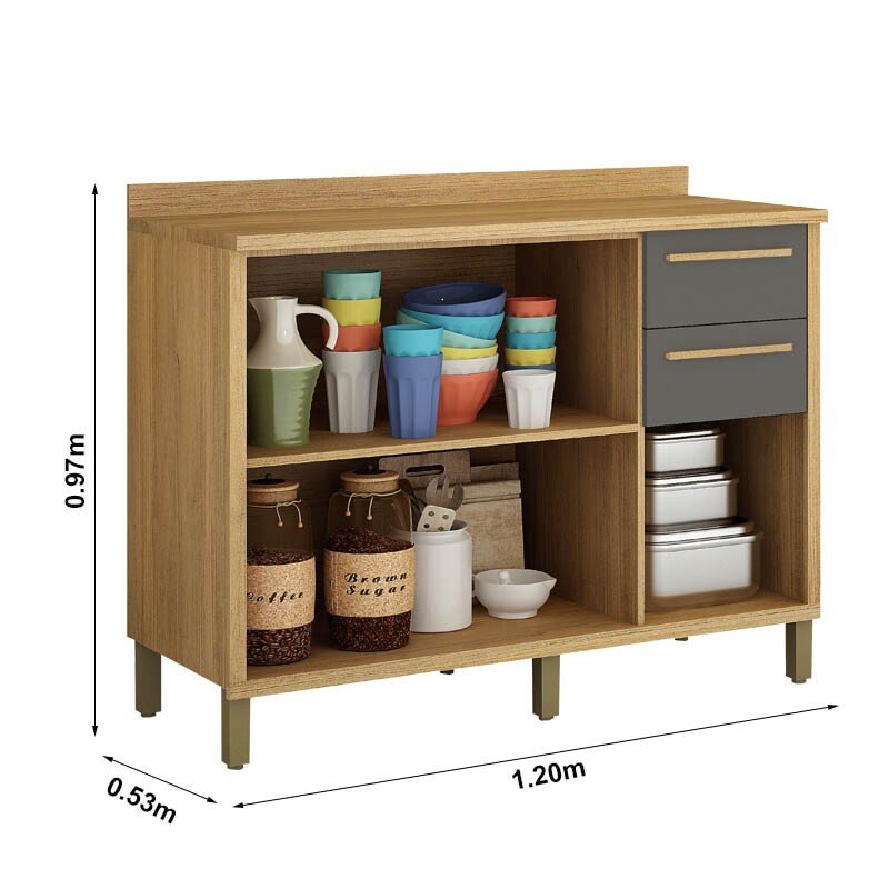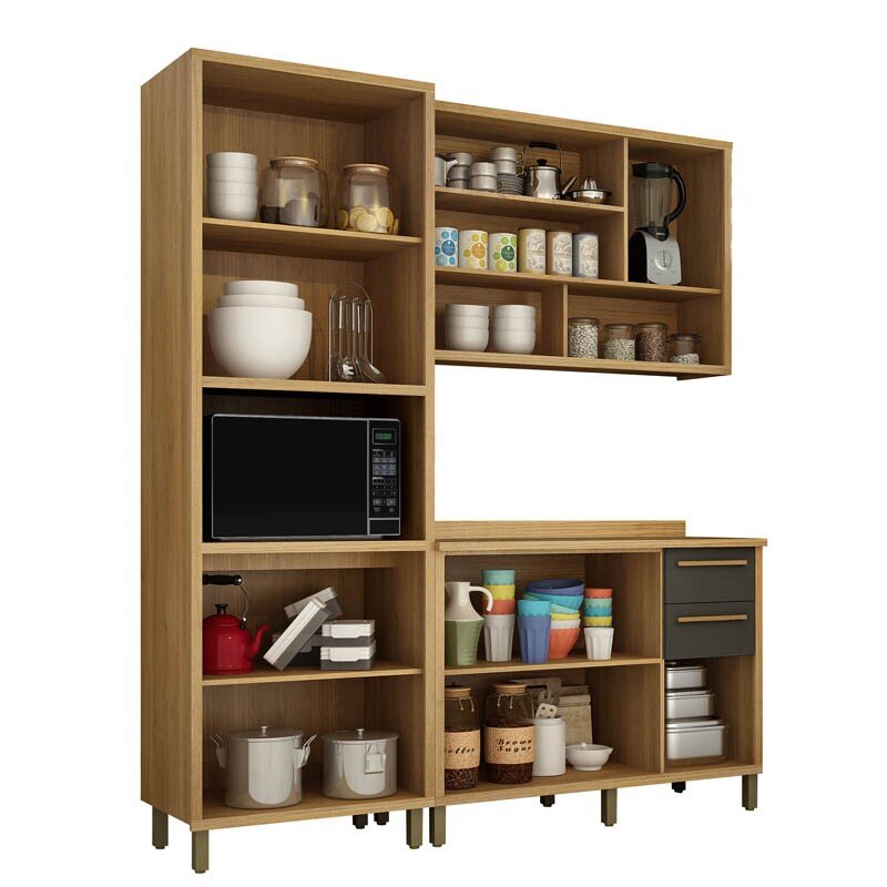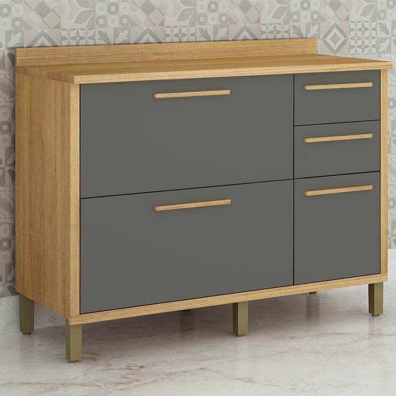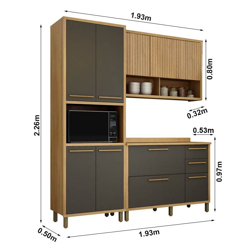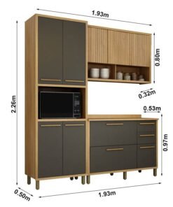 3{%%}Descrição{%%}Armário Cozinha Torino 3 Peças Paneleiro + Balcão + Aéreo Cinamomo/Grafite – Valdemoveis