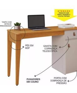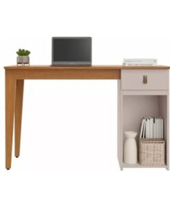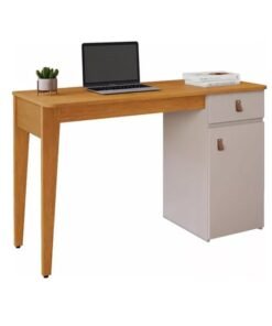 3{%%}Descrição{%%}Escrivaninha Helo Candian Larg. 1.21m Cinamomo/Off White com 1 Porta e 1 Gaveta JCM