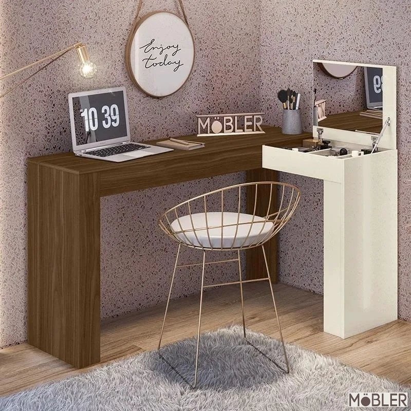 3{%%}Descrição{%%}Escrivaninha Penteadeira de Canto Jade Freijo/Off – Mobler