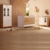 Guarda-Roupa 3 Portas + Cômoda + Berço Pingo Amêndoa/Branco Brilho – PEROBA MÓVEIS