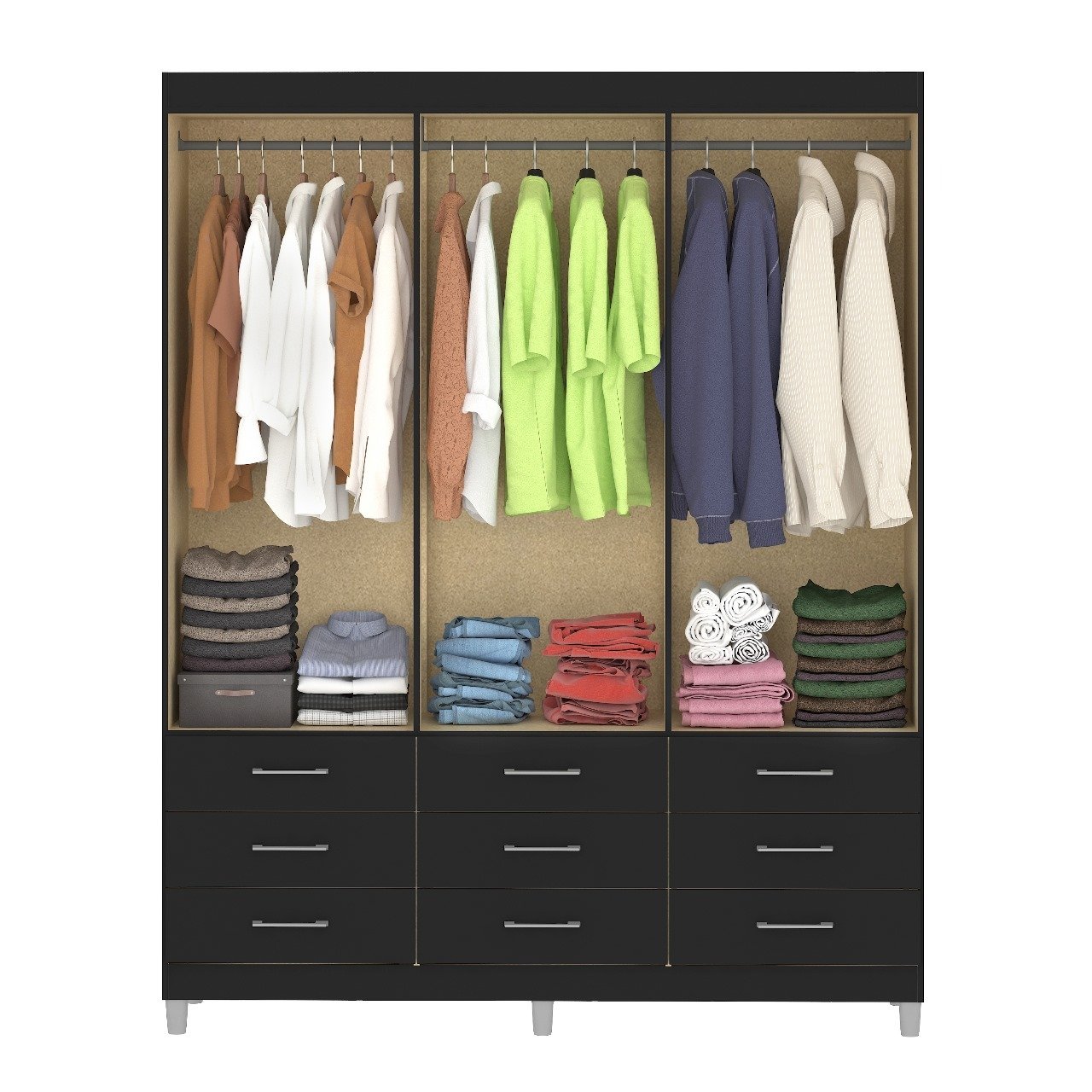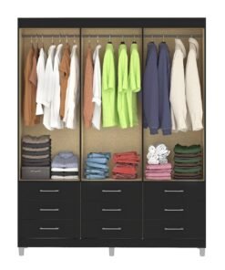 Guarda-Roupa 6 Portas Paraty 3690 + Cômoda 5 Gavetas Sapateira Miami Preto – FELLICCI