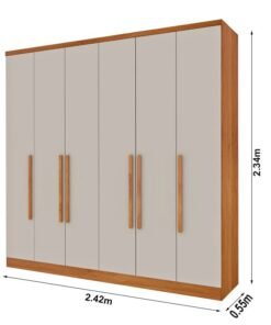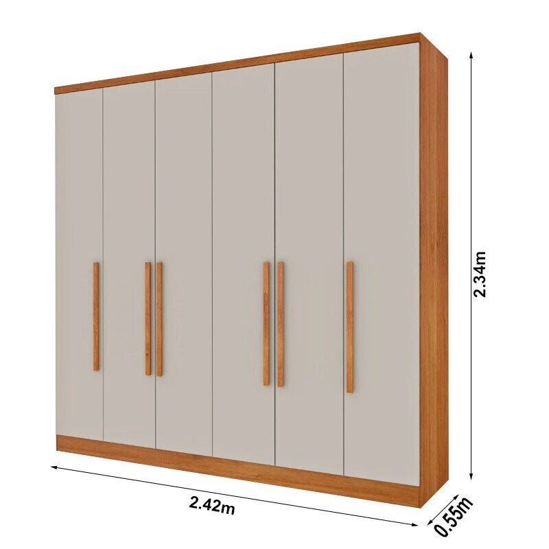 3{%%}Descrição{%%}Roupeiro Casal Veneza Cinamomo/Off 6 Portas 4 Gavetas Larg. 2.39m – Tcil
