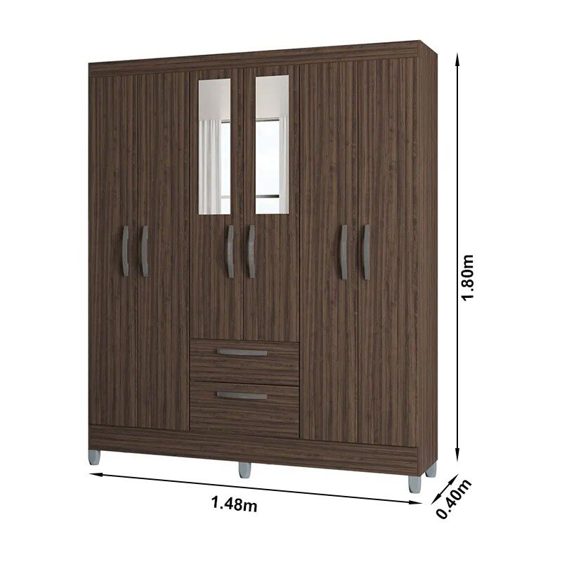 3{%%}Descrição{%%}Guarda-Roupa Casal Multi 6 Portas 2 Gavetas c/Espelho e Pés Larg. 1.48m Chocolate Poquema