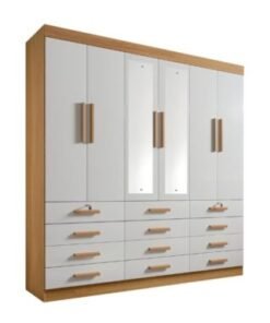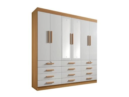 Guarda-Roupa Mônaco c/espelho 6 portas e 12 gavetas – Cinamomo/Off White