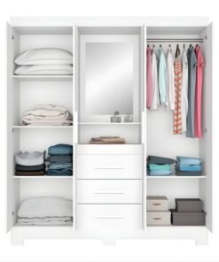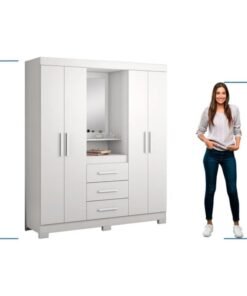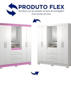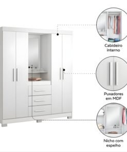 3{%%}Descrição{%%}Guarda-Roupa Solteiro 4 portas NT 5015 Branco/Rosa Flex Com Pés Notável