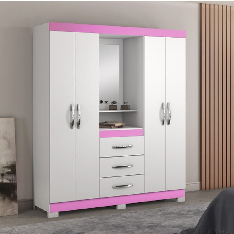 3{%%}Descrição{%%}Guarda-Roupa Solteiro 4 portas NT 5015 Branco/Rosa Flex Com Pés Notável