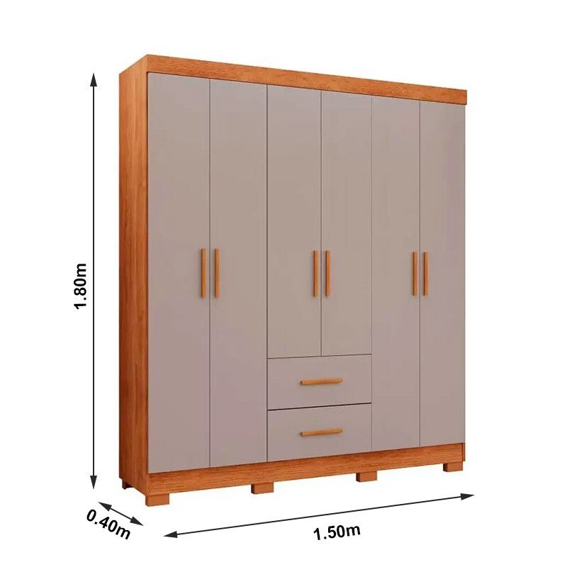 3{%%}Descrição{%%}Guarda-Roupa Solteiro Estrela 6 Portas 2 Gavetas Cinamomo/Off White Larg. 1.50m Sallêto Pés Grátis