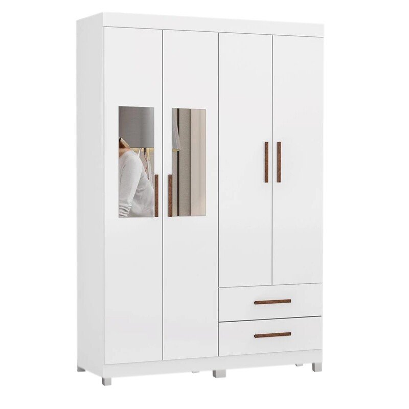 3{%%}Descrição{%%}Roupeiro Solteiro Hercules Branco 04 Portas 02 Gavetas C/Espelho e Pés Larg. 1.18m – Carioca