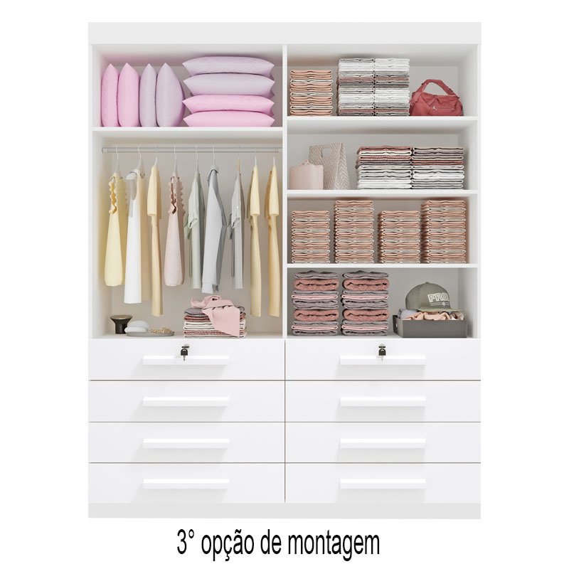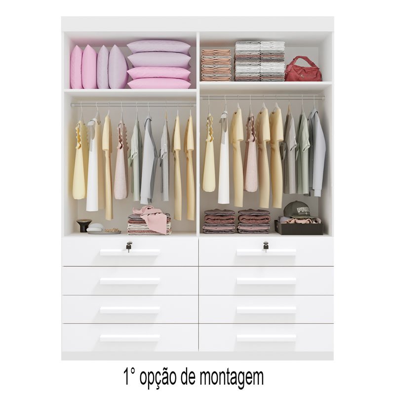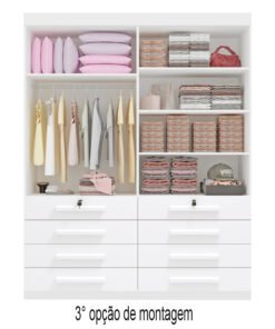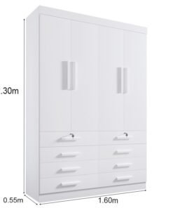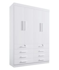 3{%%}Descrição#Como Montar{%%}Roupeiro Solteiro Mônaco Branco 4 Portas 8 Gavetas Larg. 1.60m – D Doro