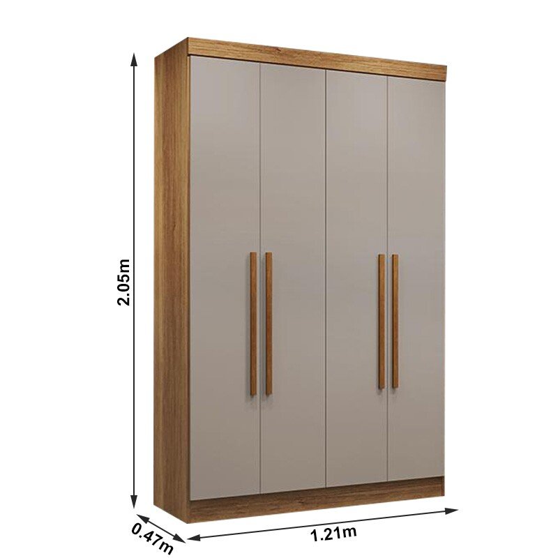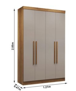 3{%%}Descrição{%%}Guarda-Roupa Solteiro Recife 4 Portas 2 Gavetas Larg. 1.21m Cinamomo/Off White Sallêto