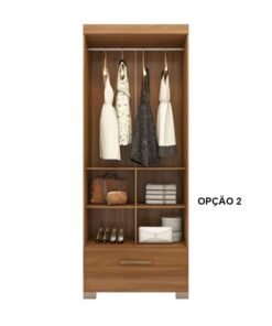 3{%%}Descrição{%%}Roupeiro Solteiro Smart Plus (GR2123) Cinamomo 2 Portas 1 Gaveta C/Pés Larg. 0.85m – Rodial Móveis