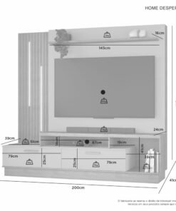 – Espaço para TV: 149 cm x 116 cm (LxA)