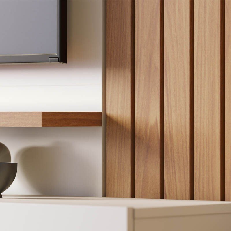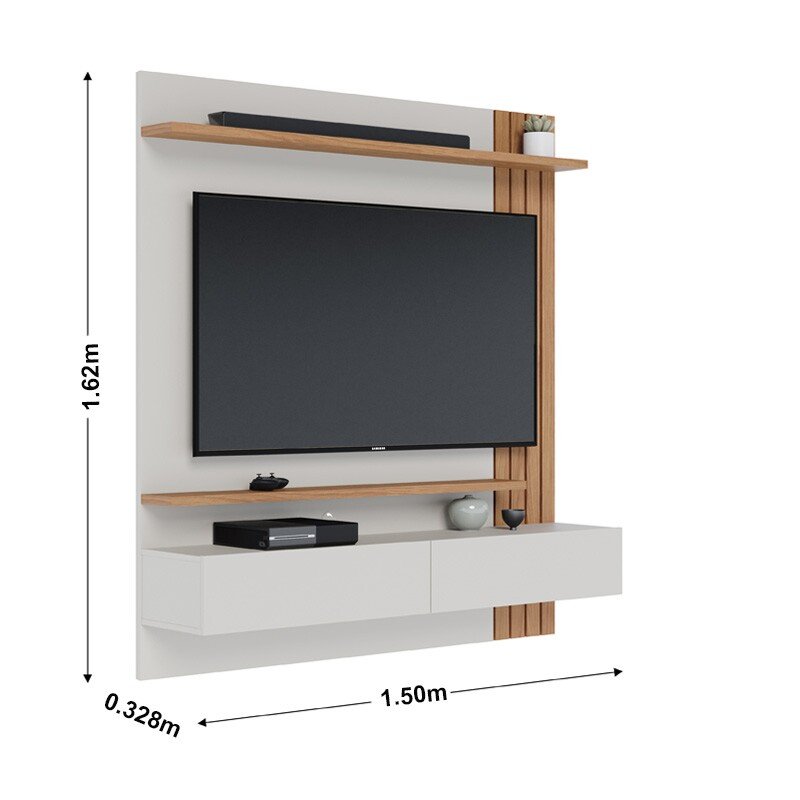3{%%}Descrição{%%}Home Suspenso Juriti Larg. 1.50m para TV até 65 Polegadas Off White/Freijó Colibri