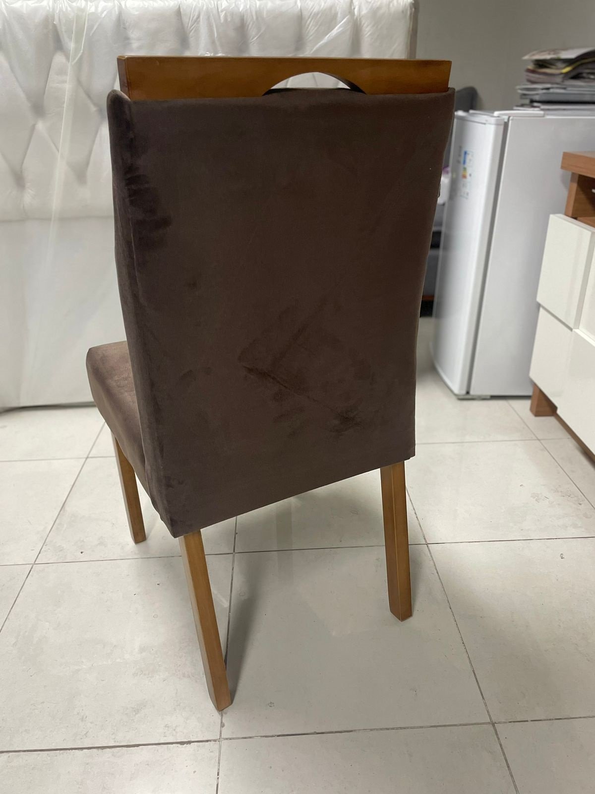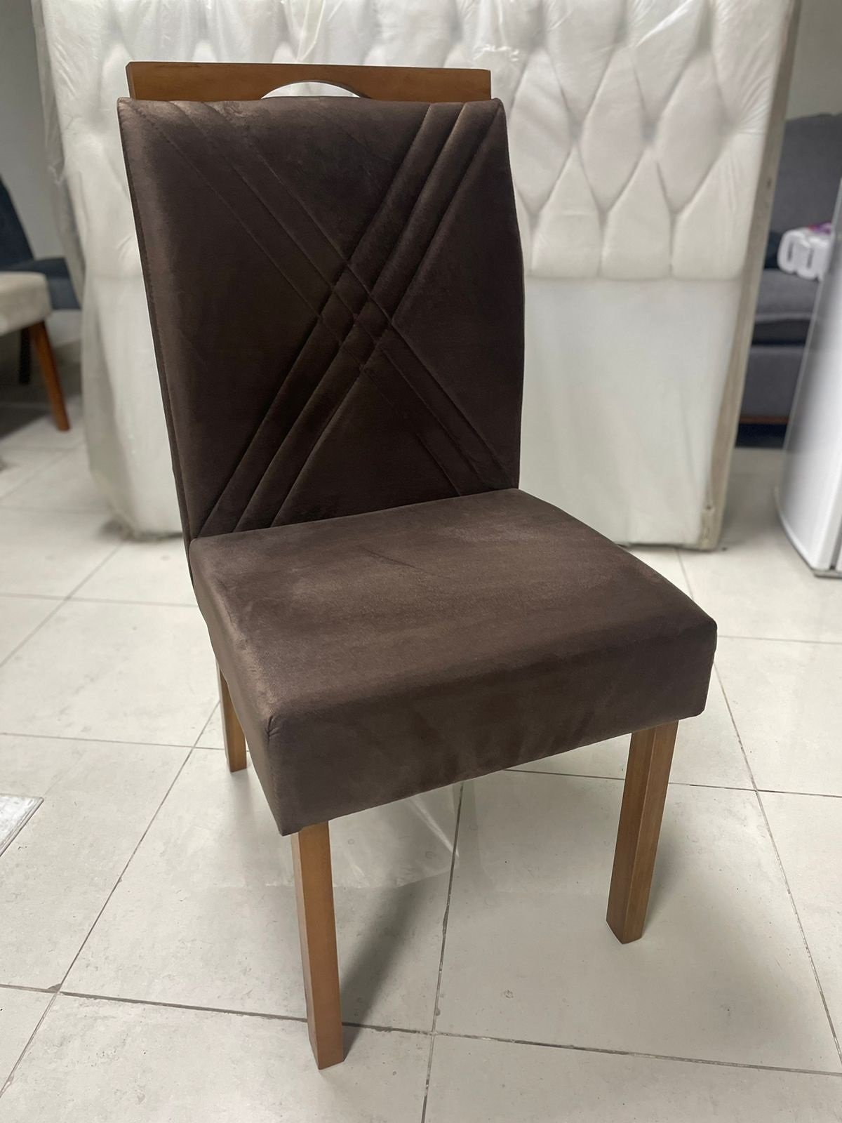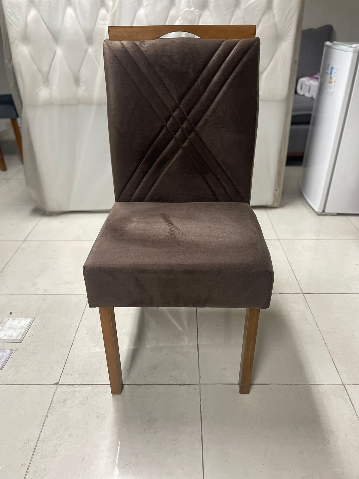 – Assento em veludo marrom
