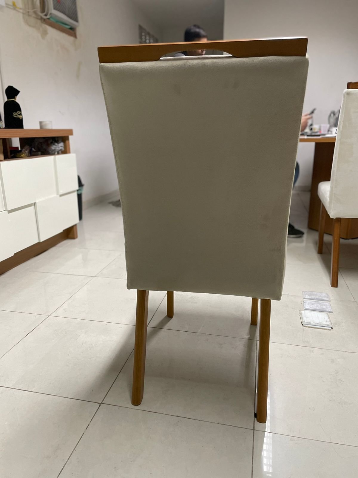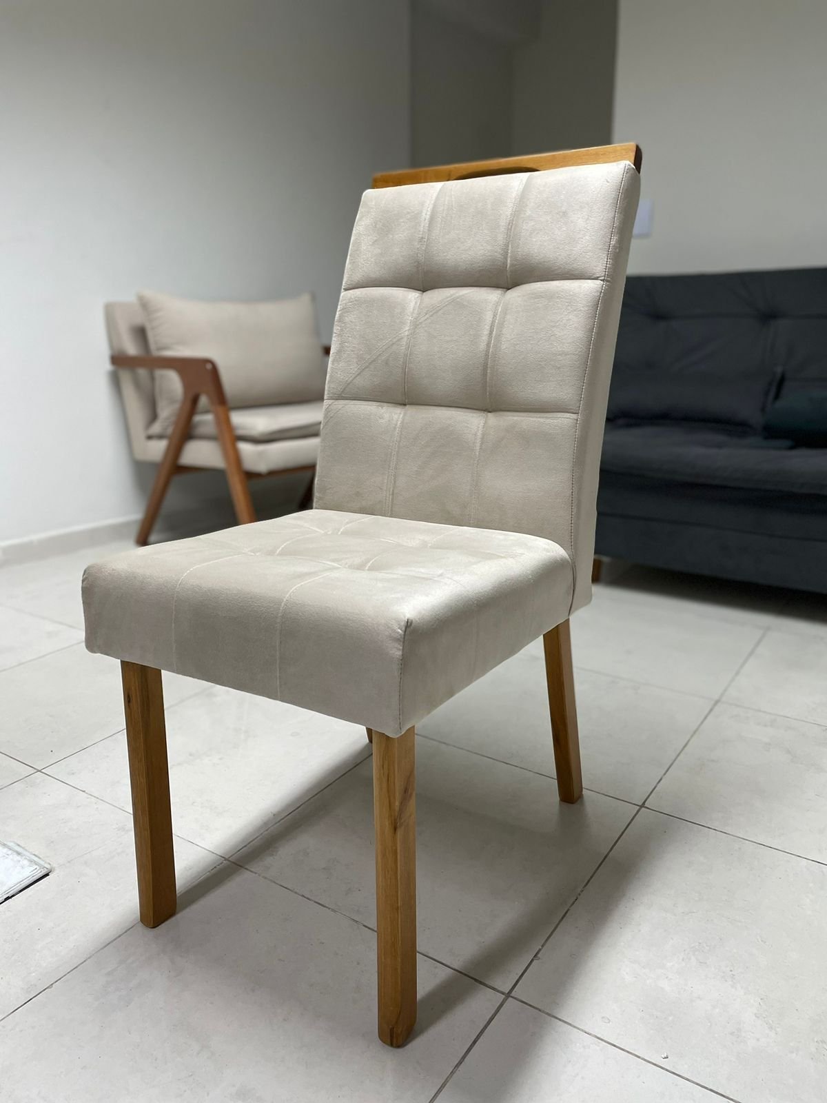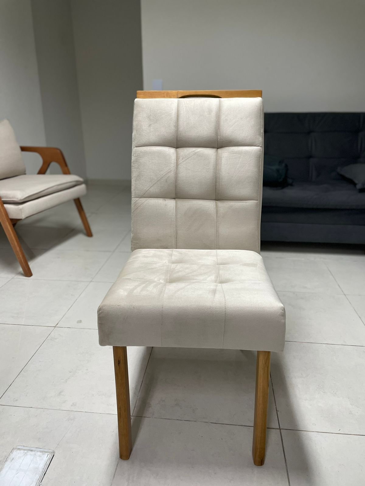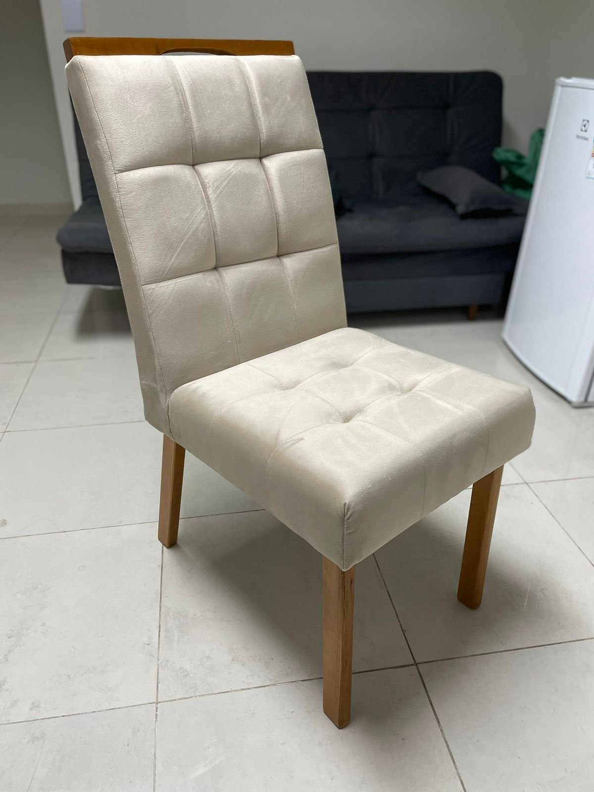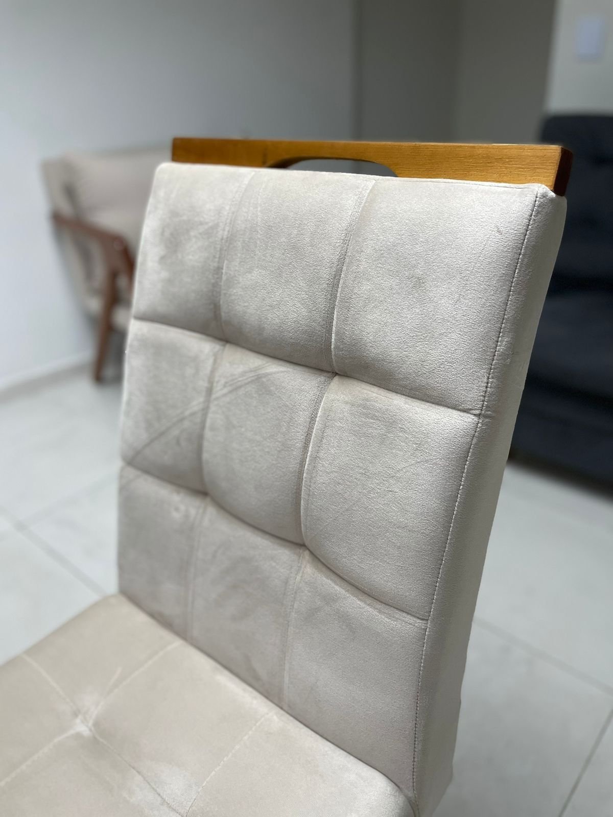 – Assento em veludo bege