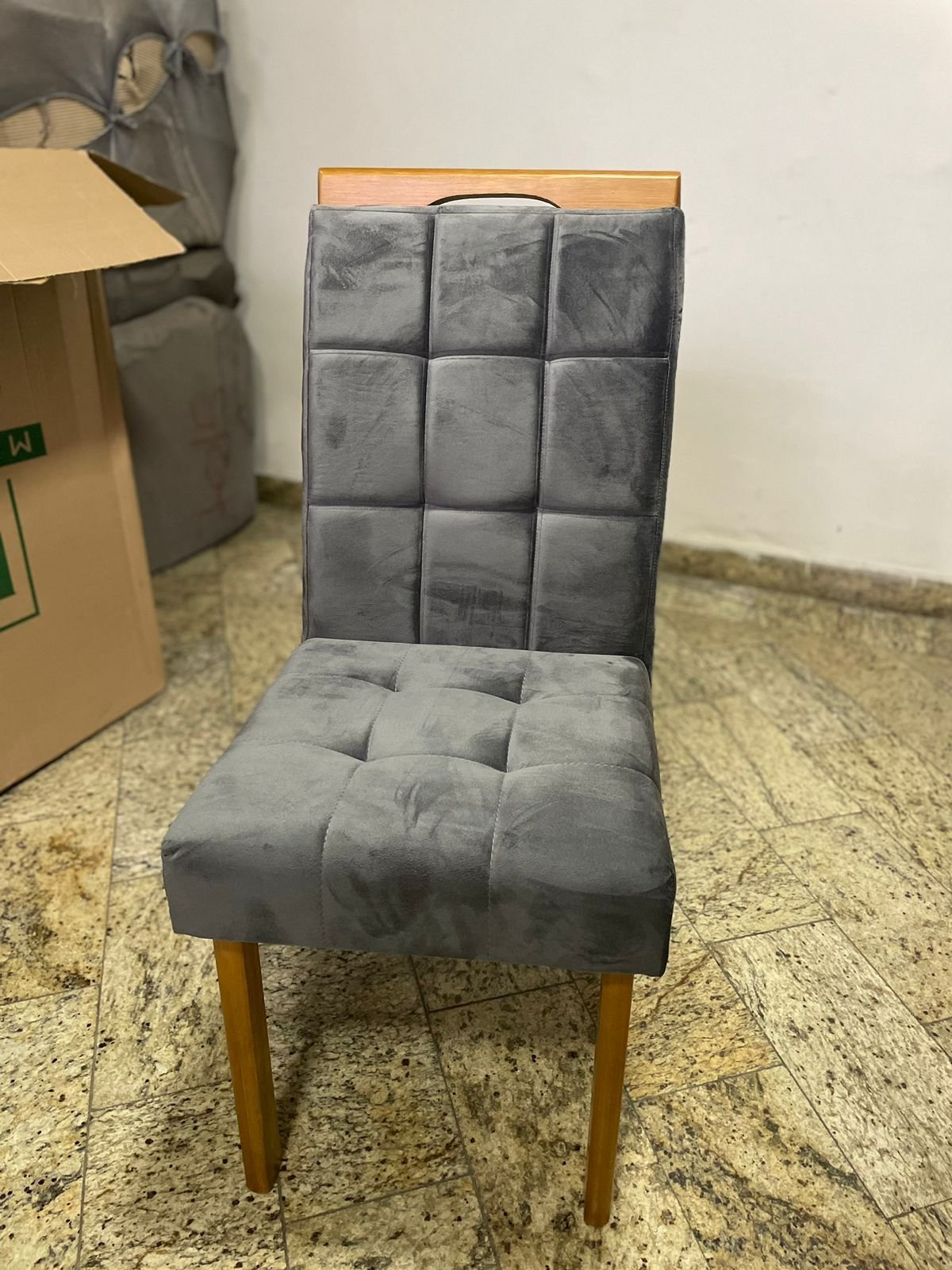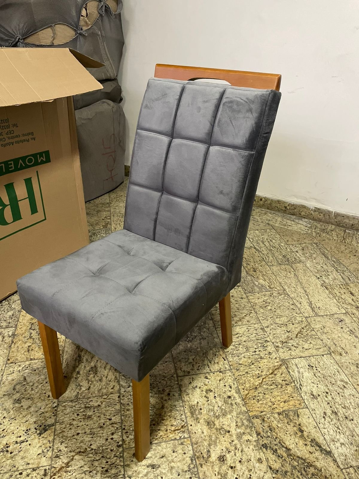 – Assento em veludo grafite