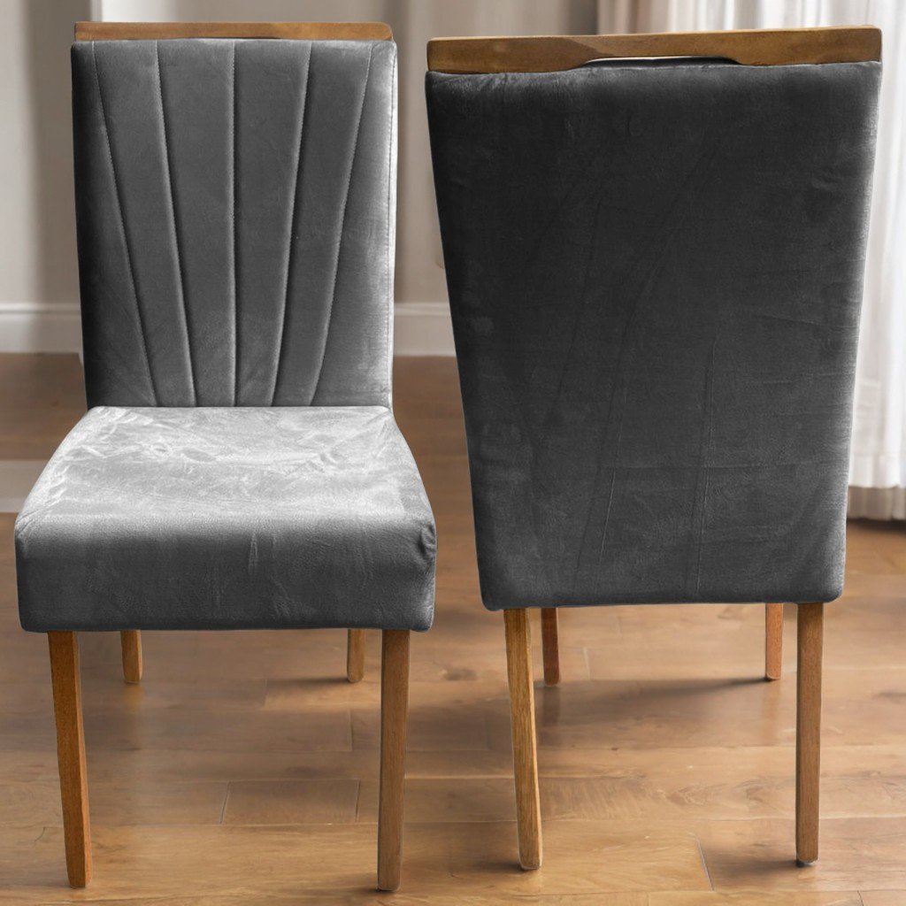 Kit 2 Cadeiras Patrícia 01 Imbuia Mel/Veludo Cinza Grafite 406 – CARVALHO DECOR
