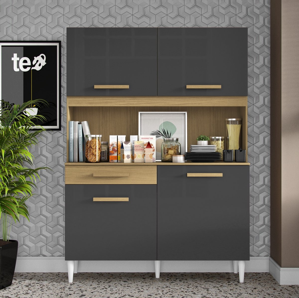 Kit Cozinha 4P1G 1,21 m Atacama/Grafite – ARAMÓVEIS