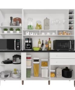 – Seis portas com dobradiças de pressão, sendo duas com vidro
