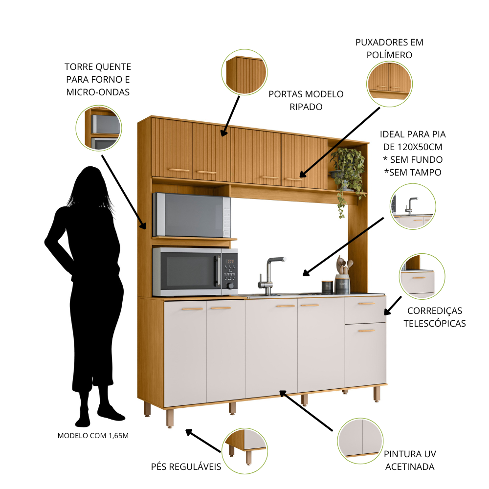 Kit Cozinha Liz 1,80 m Freijó/Ripado/Off White – POLIMAN