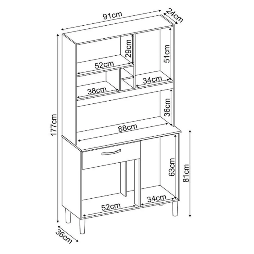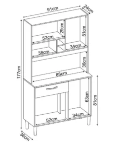 – Espaço para microondas 36 cm x 87 cm x 35 cm (AxLxP)