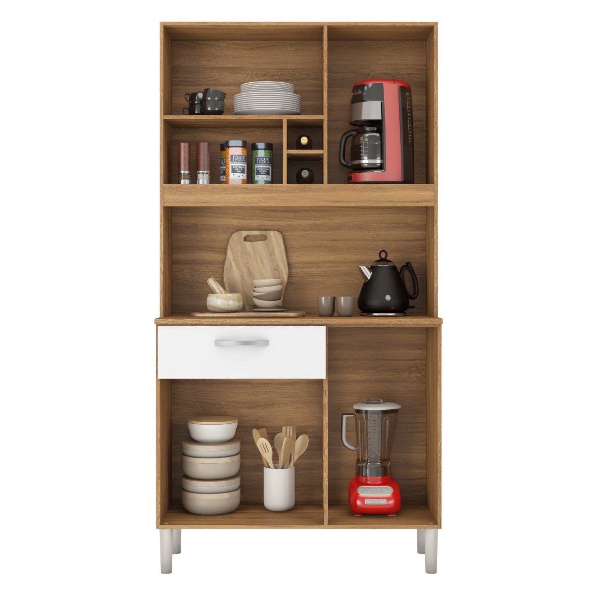 Kit Cozinha Malta 0,91 m Amêndola Touch/Branco – DEMÓBILE
