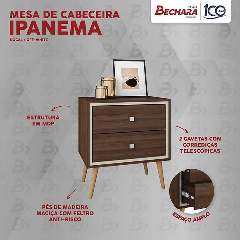3{%%}Descrição{%%}Mesa de Cabeceira Ipanema Nogal/Off 2 Gavetas Larg. 0.54m – Bechara