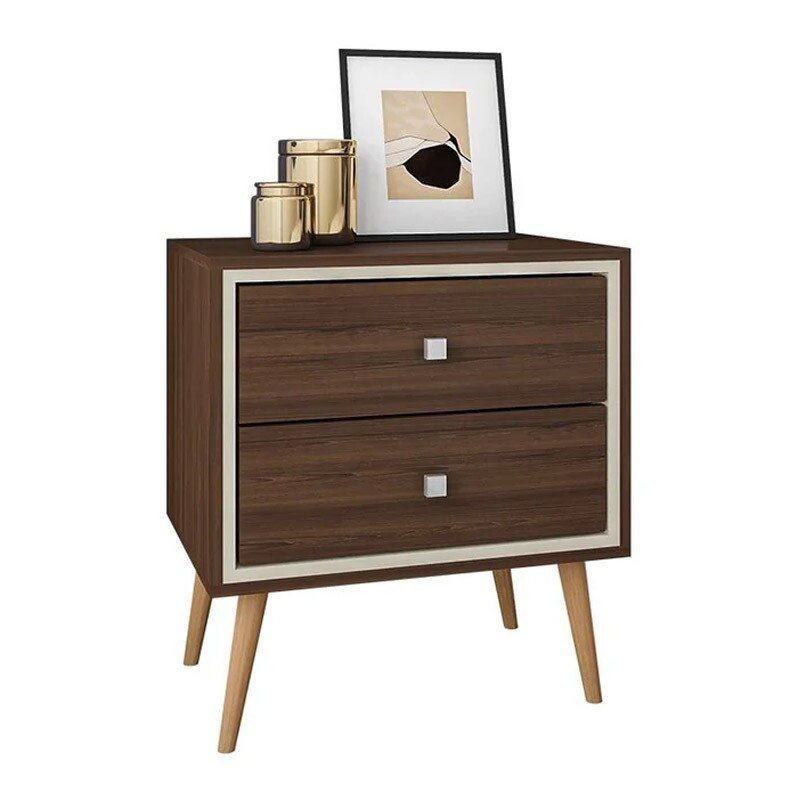 Mesa de Cabeceira Ipanema Nogal/Off 2 Gavetas Larg. 0.54m – Bechara