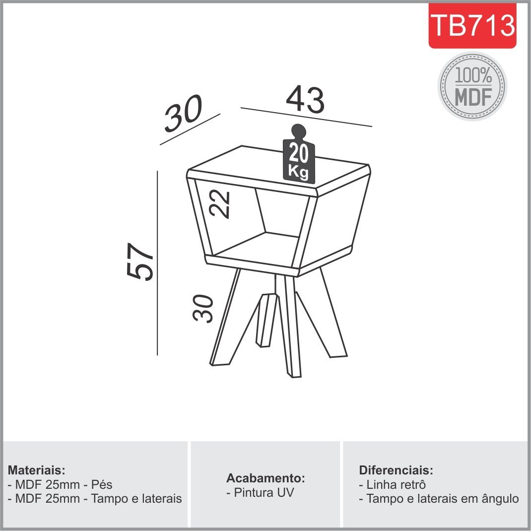 Mesa de Canto TB713 OffWhite/Freijó – DALLA COSTA