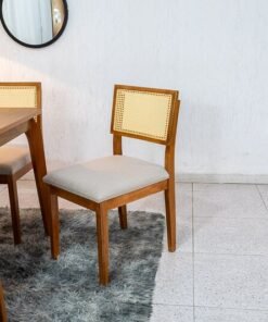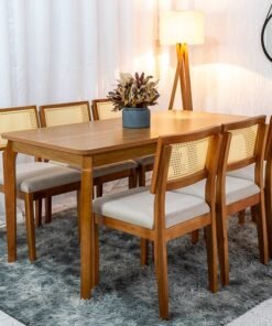 Mesa de Jantar Alegra Tampo Cinamomo 160×80 6 Cadeiras Jade Linho Bege 29011 JCM Madeira Maciça