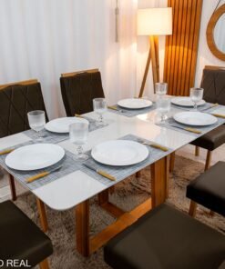 Mesa de Jantar Alegra Tampo Cinamomo 160×80 6 Cadeiras Jade Linho Bege 29011 JCM Madeira Maciça