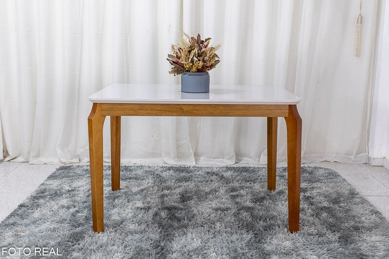 3{%%}Descrição{%%}Mesa de Jantar Alegra Tampo Vidro Off 120×80 4 Cadeiras Diamante Linho Cinza 2904 JCM Madeira Maciça