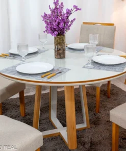 Seja o primeiro a avaliar “Mesa de Jantar Atlanta Redonda 120cm Vidro Off/Base Madeira + 4 Cad. Atlanta Linho Bege Cru Madeira Minas Plac – Entregue Montada”